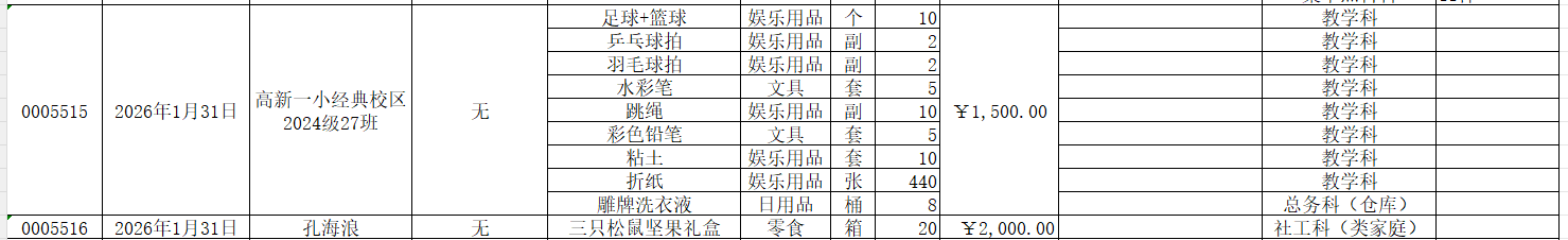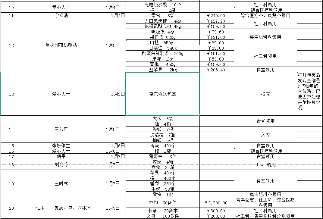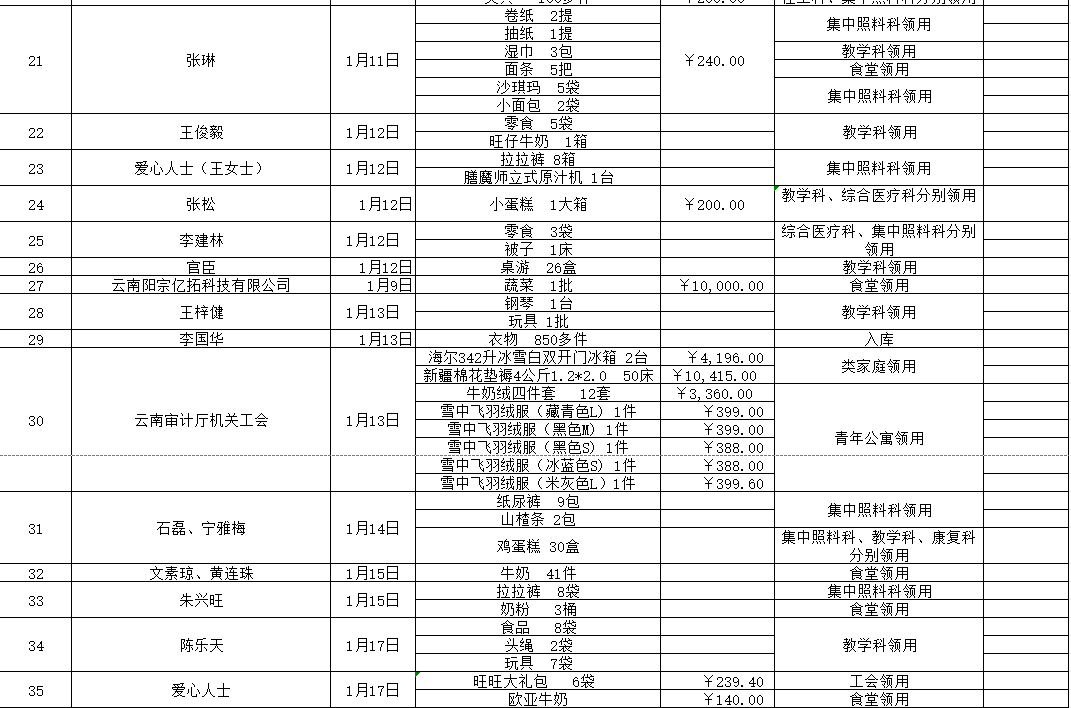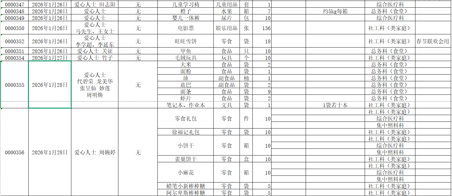 2026年1月接受物资捐赠情况公示