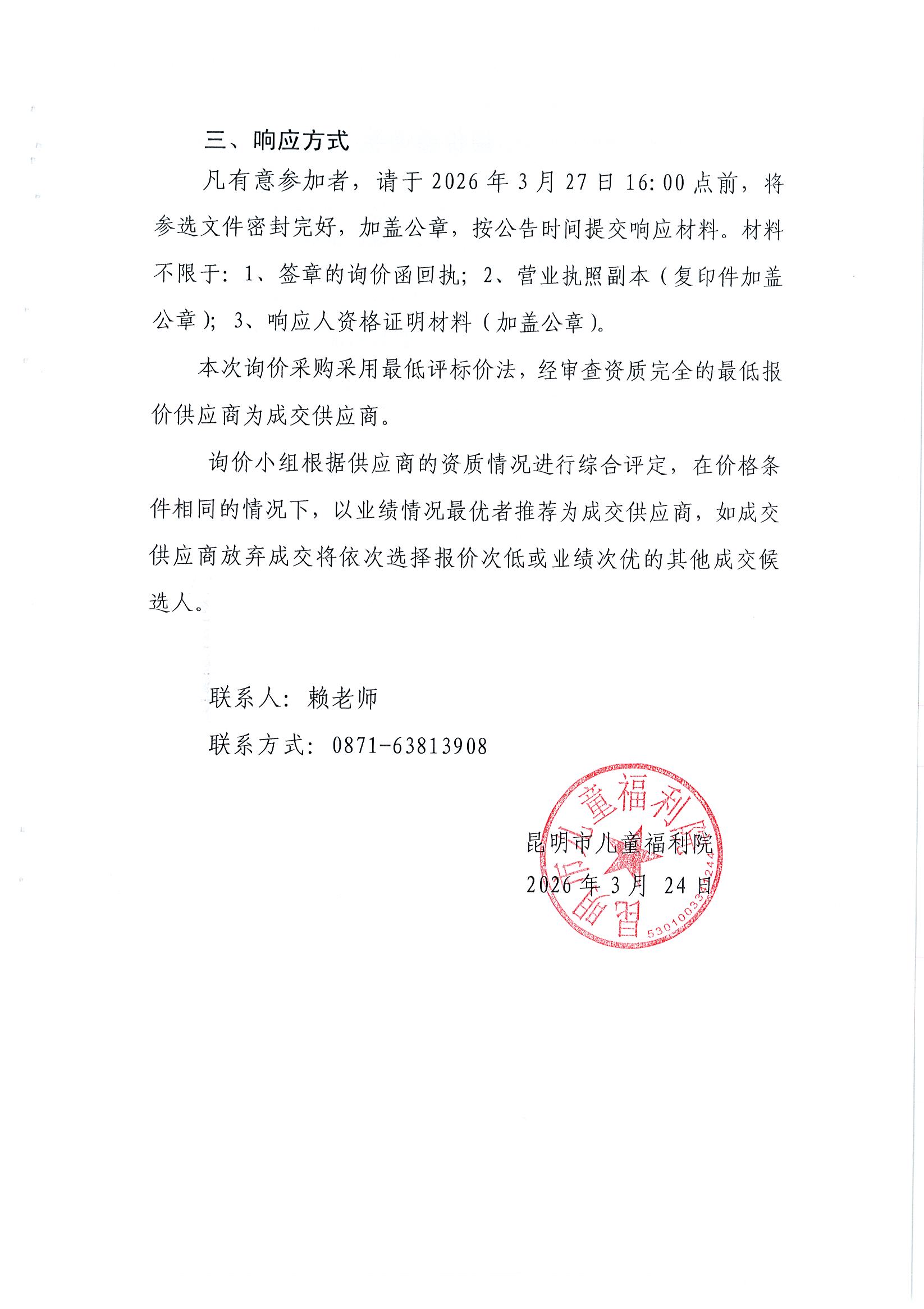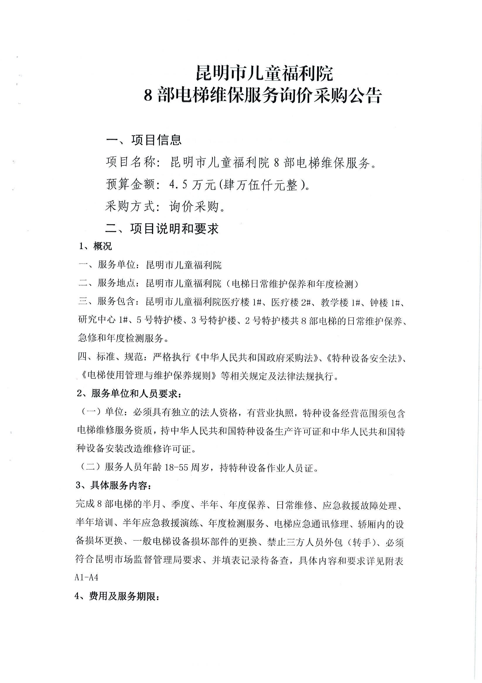 昆明市儿童福利院8部电梯维保服务询价采购公告